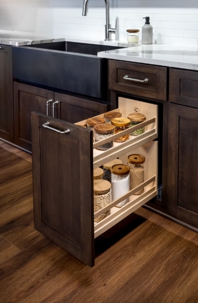 We will soon be listing a Century Components base cabinet organizer designed for shorter heights. This model will require a clearance of 20-1/4" and will not include a knife block.