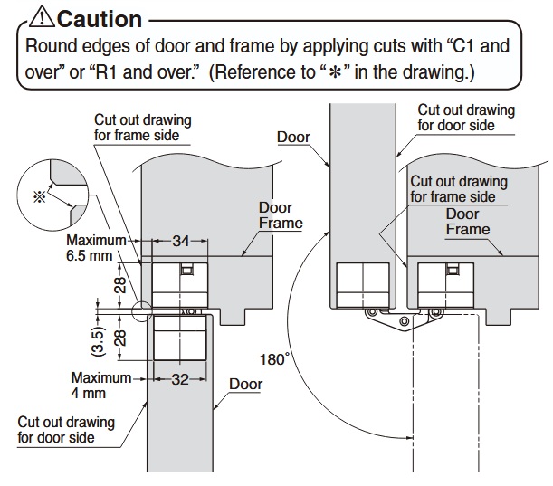 - Max. Door Size: 94-1/2" (2400mm)H x 35-7/16" (900mm)W.